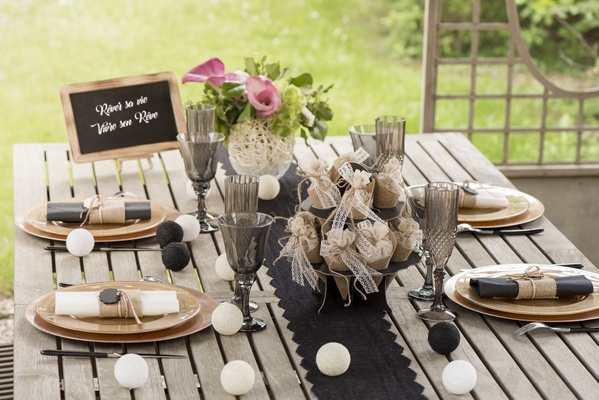 Sada 4 kusů béžových bavlněných kuliček o průměru 5 cm, jako skvělá dekorace slavnostního stolu.