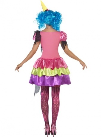 Tento pestrobarevný kostým připomínající zombie klaunici je vhodný na každou halloweenskou párty.