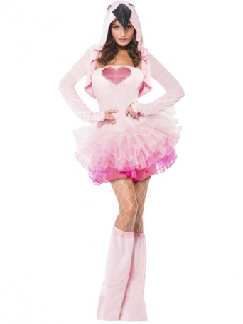 Dámský kostým pro sexy plameňáky se skládá z tutu šatiček s odepínacími ramínky, bolerka a návleků na nohy.